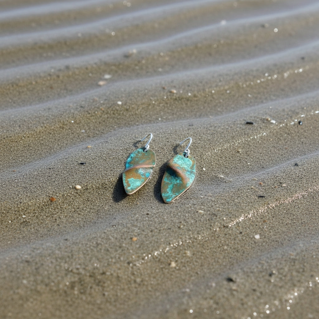 These handcrafted Ocean Treasure copper earrings feature eye-catching texture, sterling silver ear wires, and a glazed finish to stabilize the oxidation They come in a variety of shapes and sizes. Each pair is unique. These are examples of the styles. At any given time I may variations of the items photographed. Please contact me at crystalborealisstudio@gmail.com