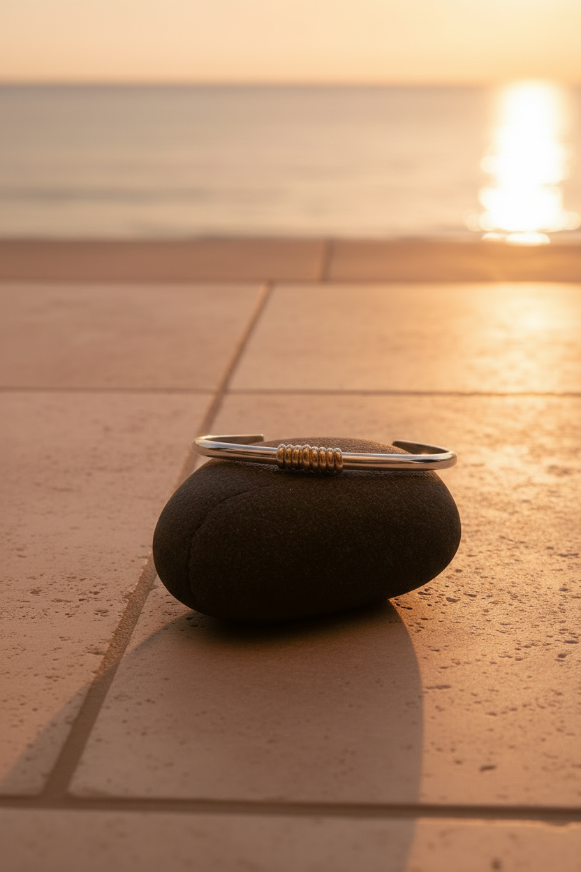 Crafted from a slightly thicker stock than our Meridian Classic hammered sterling silver cuff. This sterling silver mens or womens classic is accented with a 14k gold-filled center detail, this cuff is an easy-to-wear classic. Wear it on its own for a minimalist statement or layer it with your other favorite bracelets for a stacked look. Hammered accents. Available in sizes Smal, Medium, and Large.